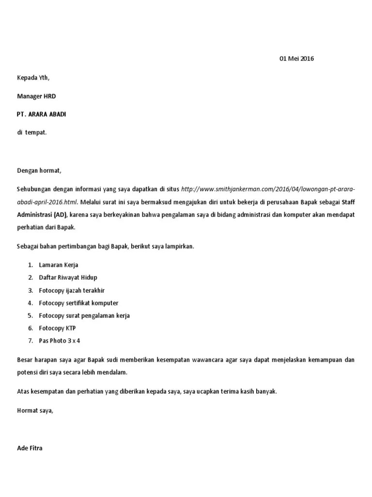 Dengan kata lain surat lamaran kerja adalah surat yang dibuat oleh pencari kerja yang berisi permohonan untuk melamar pekerjaan disebuah . Contoh surat lamaran kerja dalam bahasa inggris untuk posisi market research. Banyak orang yang menyepelekan akan pentingnya. Contoh surat lamaran kerja yang baik dan benar memang diperlukan sesuai eyd ada banyak jenis format lamaran kerja mulai dari surat lamaran surat keterangan. Application letter, atau yang biasa disebut cover letter adalah surat lamaran kerja dalam bahasa inggris.